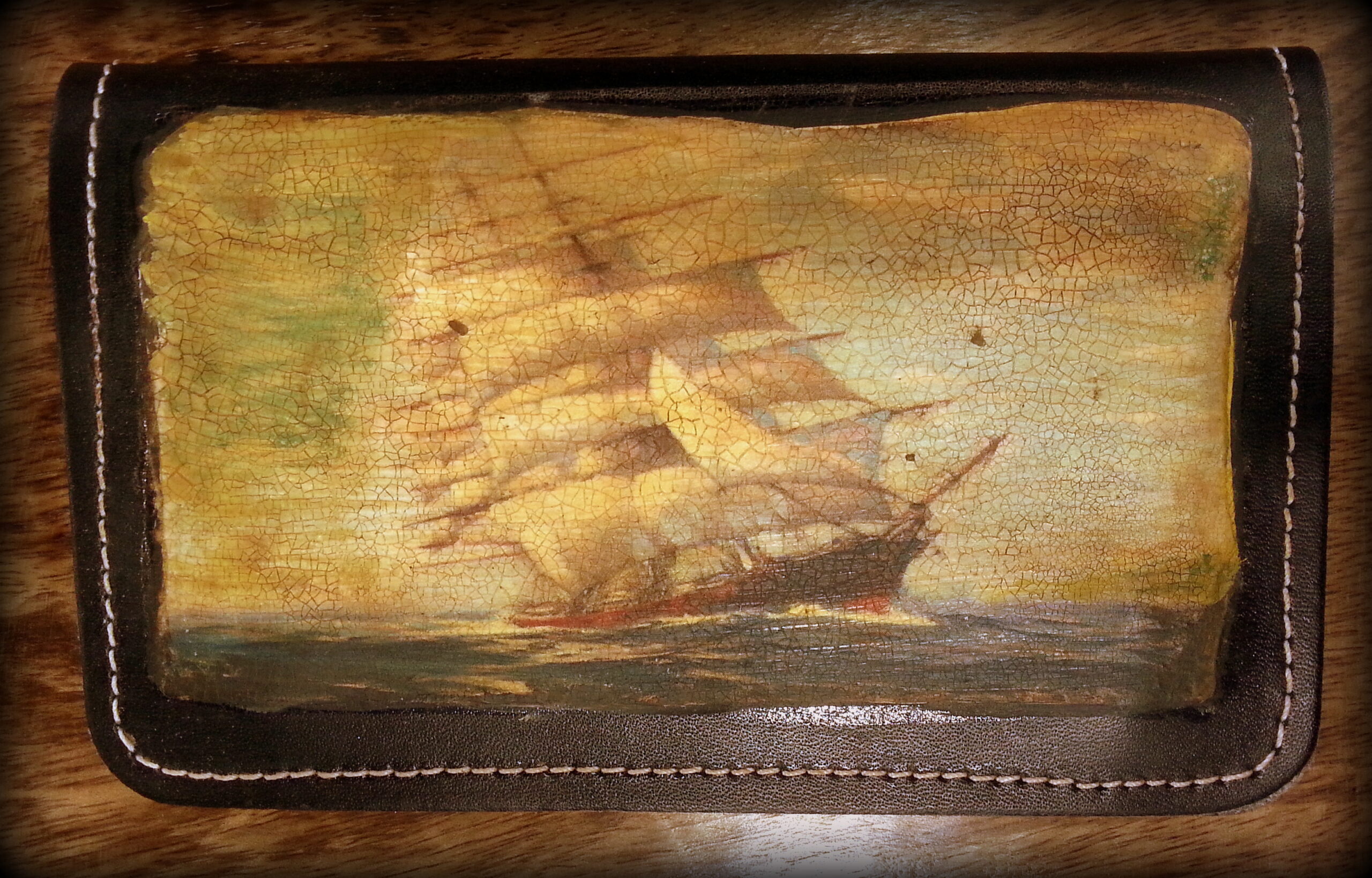 Δερμάτινη χειροποίητη καπνοσακούλα σε μαύρο μάτ χρώμα,με χειροποίητη εικώνα.Τρείς θύκες εσωτερικά, μια για τον καπνό, μια για τα φιλτράκια και μια για τα χαρτάκια ανοιχτή. Κλείσιμο με μαγνήτη.