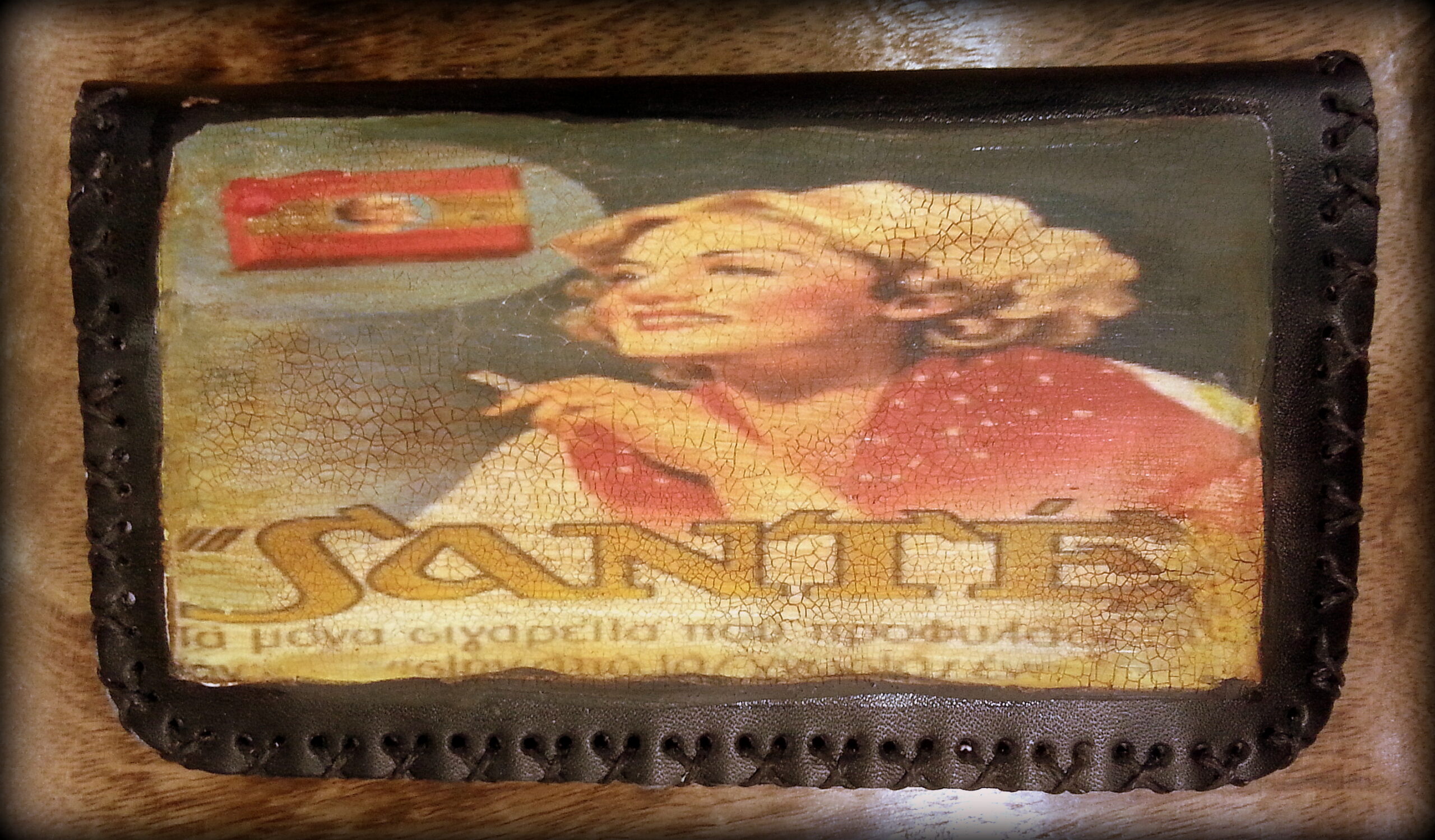Δερμάτινη χειροποίητη καπνοσακούλα σε μαύρο μάτ χρώμα,με χειροποίητη εικώνα.Τρείς θύκες εσωτερικά, μια για τον καπνό, μια για τα φιλτράκια και μια για τα χαρτάκια ανοιχτή. Κλείσιμο με μαγνήτη.